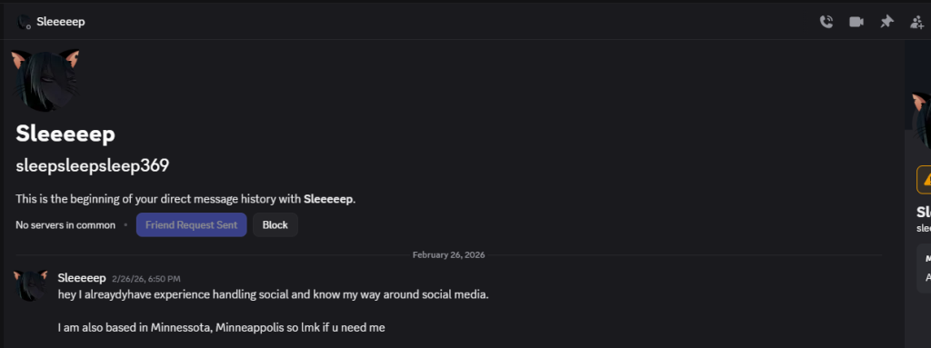 • After identifying potential targets, they initiate contact via private messages (PMs), often presenting themselves as offering legitimate services or job-related assistance.